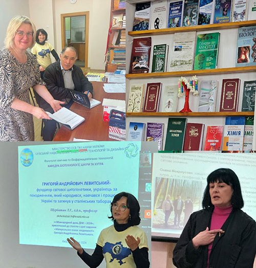 З вітальним словом від керівництва університету та факультету хімічних та біофармацевтичних технологій до учасників наукового семінару звернулась Олена Мокроусова, завідувач кафедри біотехнології шкіри та хутра, д. т. н., професор. Олена Романівна акцентувала на важливості свідомої позиції людства до знань генетики та долучення до світових тенденцій у щорічному святкуванні відкриття ДНК та геному людини, що набуло фактичного підтвердження представленими результатами опитування навесні 2024 року 173 респондентів щодо генетизації суспільства/ Цьогорічний День ДНК у КНУТД було присвячено 100-річчю з дня видання наукової праці «Матеріальні основи спадковості» Григорія Андрійовича Левитського – фундатора цитогенетики, який народився, навчався і працював в Україні та загинув у сталінських таборах. Про значний внесок досягнень професора, доктора біологічних наук, члена-кореспондента АН СРСР Г. А. Левитського в світову науку розповіла автор та ідейний натхненник заходу Тетяна Щербатюк, професор кафедри біотехнології, шкіри та хутра, д. б. н., професор.