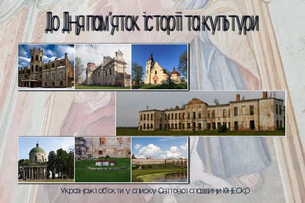 18 квітня в Україні щорічно відзначається День пам’яток історії та культури, також це – Міжнародний день пам’яток і історичних місць, встановлений Асамблеєю Міжнародної ради з питань охорони пам’яток і визначних місць, створеною при ЮНЕСКО з метою зробити популярними та зберегти унікальні в своєму роді об’єкти. Україна є членом ЮНЕСКО з 1954 року. До списку Всесвітньої культурної спадщини ЮНЕСКО належать сім об’єктів в Україні, чотири з яких повністю знаходяться у межах української території, три пам'ятки частково перебувають на території інших держав. Станом на 2020 рік Україна додала ще 17 об’єктів у попередній список Світової спадщини ЮНЕСКО. |